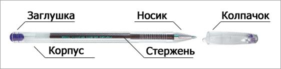 Корпус прозрачный, колпачок, носик, заглушка, стержень 143мм.